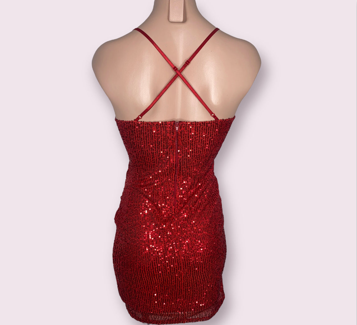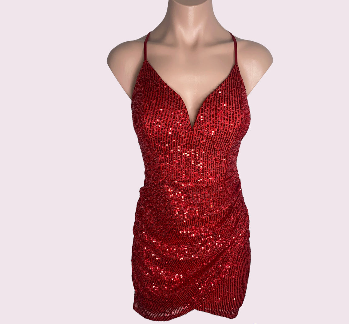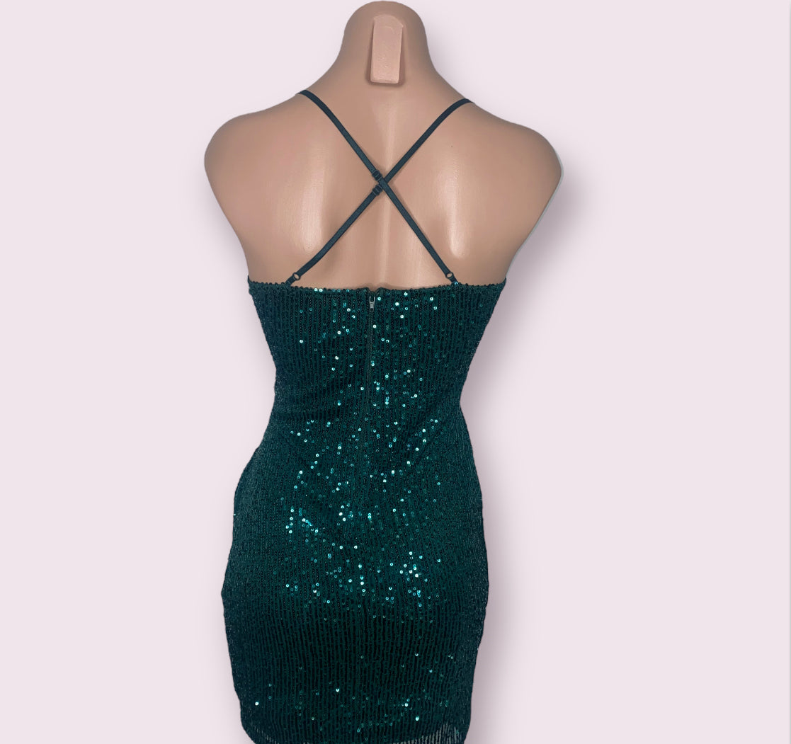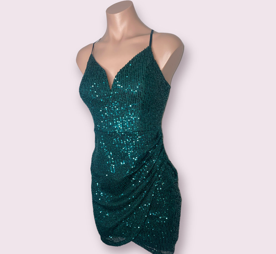 Ines- Sequins V-Neck Wrap Bodycon Mini Dress