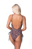 ANIMAL PRINT LACE TIE ONE PIECE SWIMSUIT