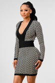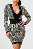 ATHINA BLACK AND WHITE PRINT BANDAGE DRESS