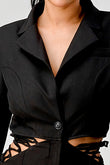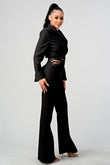 This two-piece business casual set includes an understated black top featuring cut-out waist detail, long sleeves, and a front button closure. The set features an imported construction for reliable quality. Look sharp and sophisticated in this timeless set.