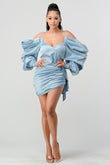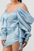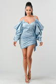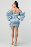 Athina Elegant Puff Shoulder Satin Mini Dress