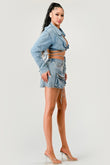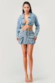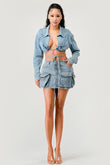 Meet the ultimate denim game-changer: our Denim Desire Crop Jacket. This piece is a bold twist on classic denim with its cropped length, tie-front detail, and striking collar design. Perfect for layering over your favorite looks, it adds an edgy yet playful touch to any outfit.