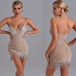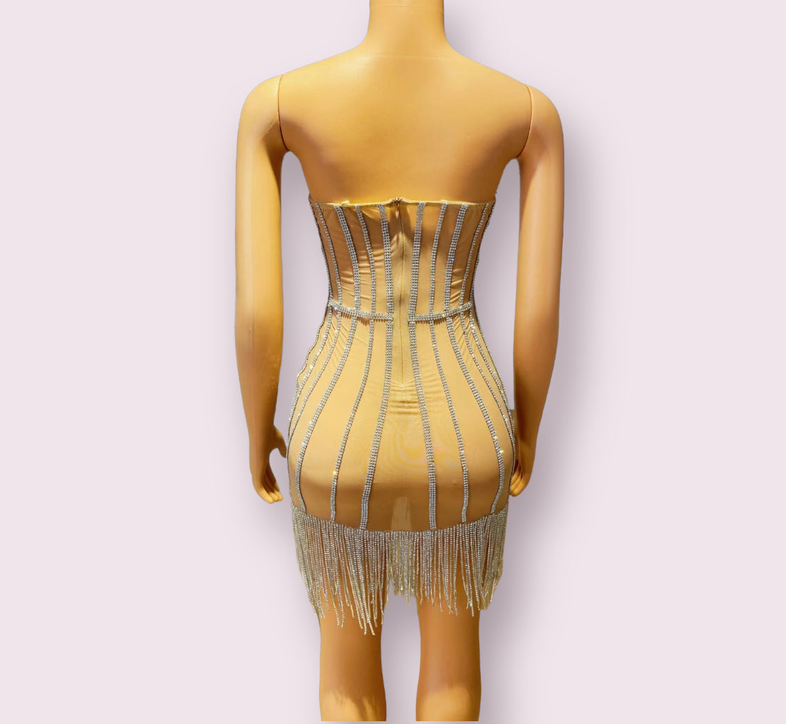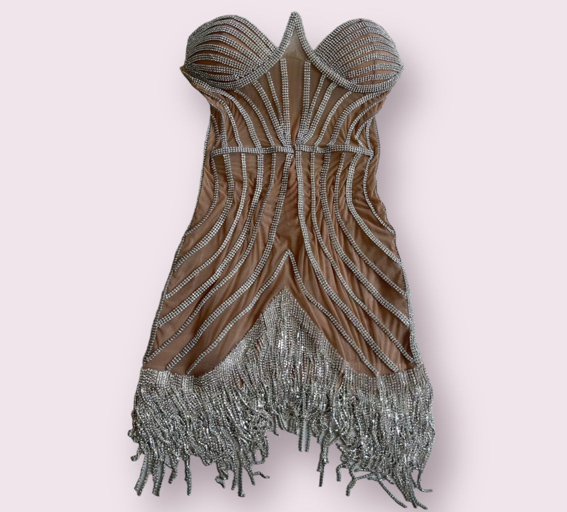 Irina- Luxe Embellished Nude Wired V Neck Bustier Tassel Mini Dress