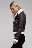 Step into style and warmth with our Plush Teddy Trimmed PU Jacket. This chic jacket combines fashion and functionality, making it a must-have for your wardrobe. The faux leather material gives it a sleek and edgy look, while the plush teddy trim adds a touch of cozy comfort. With a zipper closure and side pockets, it's practical for everyday wear and versatile enough to pair with a variety of outfits.