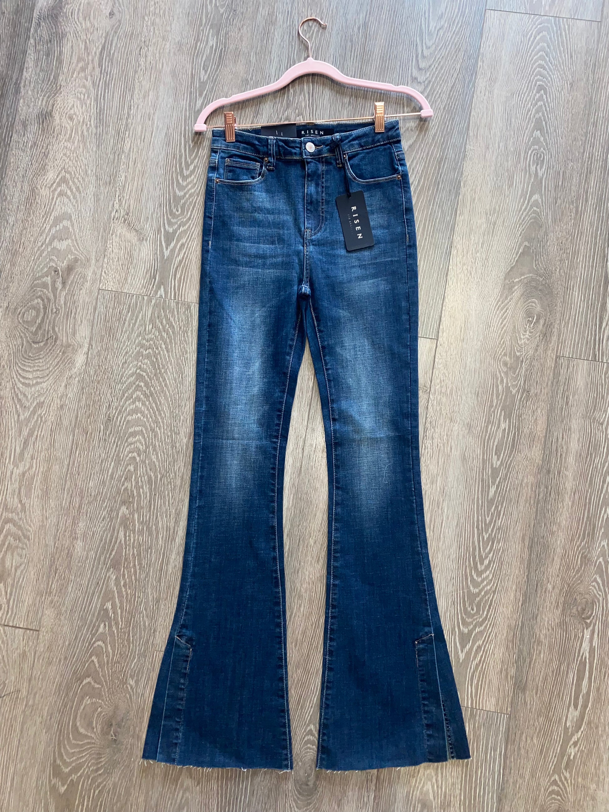 Risen Dark Wash Slit Side Wide Leg High Waist Denim Jeans
