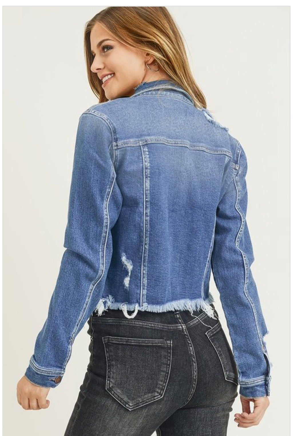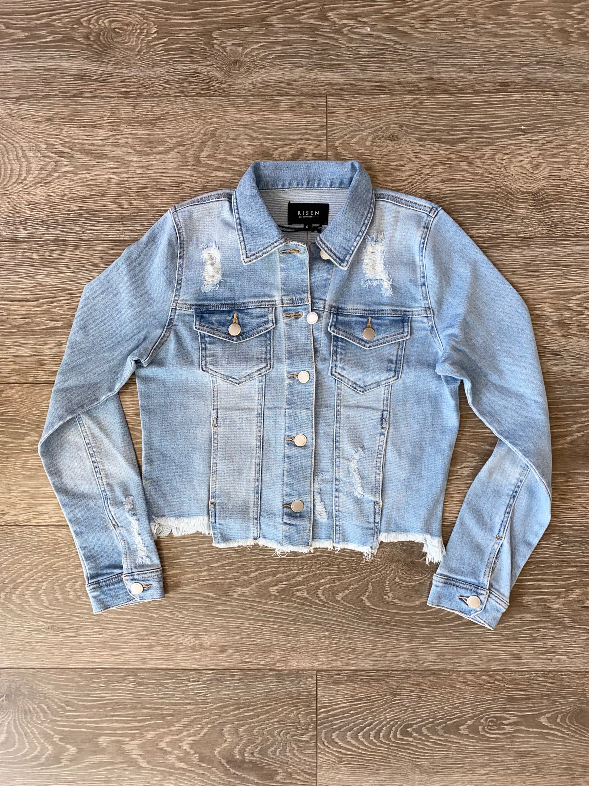 RISEN DISTRESSED VINTAGE FRAYED HEM JACKET