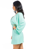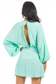 Sexy mini dress, long sleeves, v-neckline, cut off side look, open back, zip-up