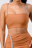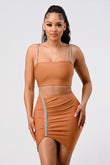Look fabulous with this two-piece set featuring a jeweled strap and high-quality fabric. In eye-catching orange, the sleeveless top and skirt boast diamond details for an extra sparkle. Imported for superior craftsmanship.
