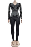 Sexy jumpsuit with deep V neckline, long sleeve, Ironing Diamond back Invisible Zipper, long pant jumpsuit, thin material